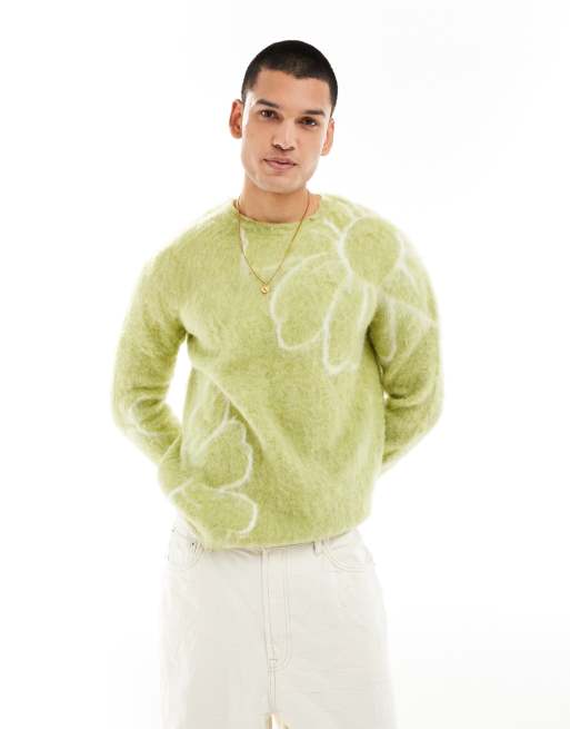 ASOS DESIGN - Pelset striktrøje i grøn med blomstermønster