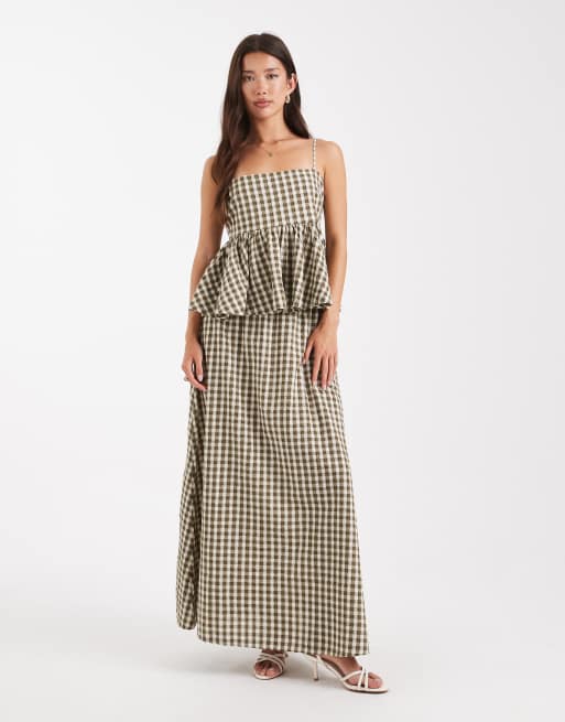 ASOS DESIGN - Peplum-camisol med bindestropper og gingham-tern - Del af sæt