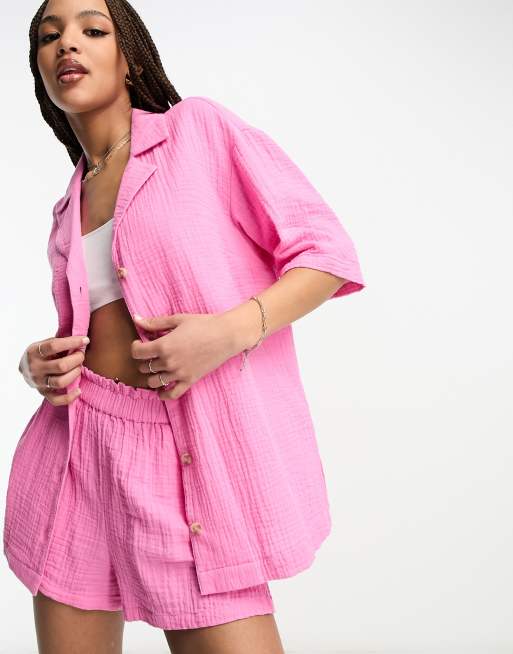 ASOS DESIGN - Pink bowlingskjorte i ostelærred - Del af sæt