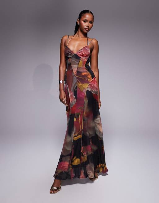 ASOS DESIGN - Pink maxikjole med synlige sømdetaljer og sløret blomstermønster i mesh