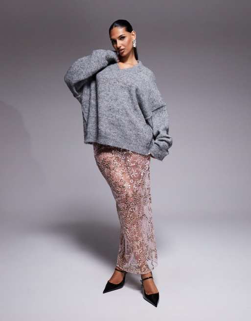 ASOS DESIGN - Pink maxinederdel med pailletter i fint blondestof