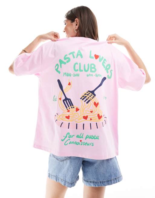 ASOS DESIGN - Pink oversized T-shirt med pasta lover-grafik