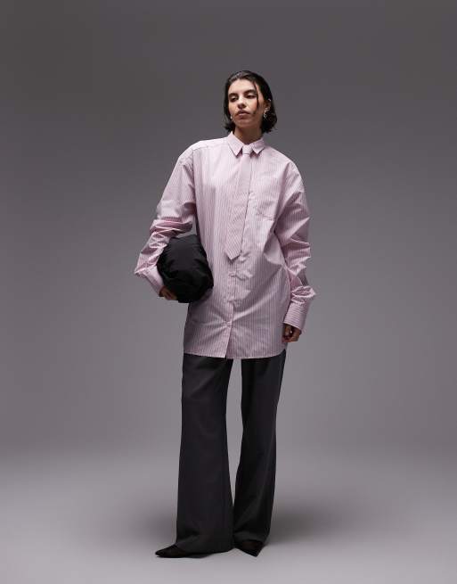 ASOS DESIGN - Pink stribet longline-skjorte med slips og oversized pasform