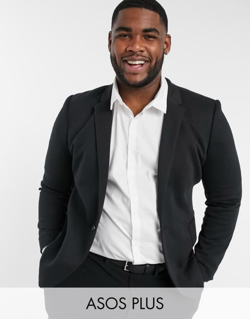 ASOS DESIGN Plus — Sort blazer i jersey med ekstra smal pasform