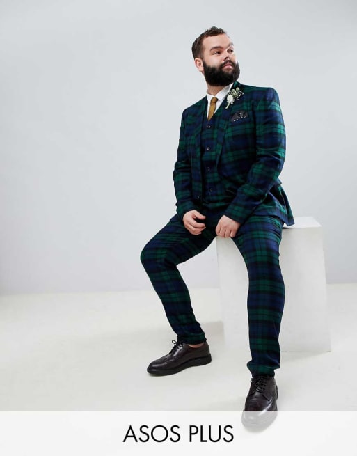 ASOS DESIGN Plus wedding superskinny habit i skotsktern og sortvaskede