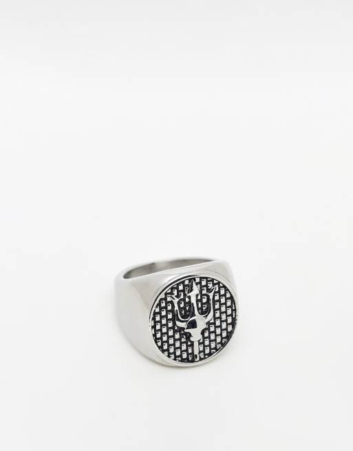 ASOS DESIGN - Poleret sølvfarvet signetring med treforkdesign i vandtæt rustfrit stål