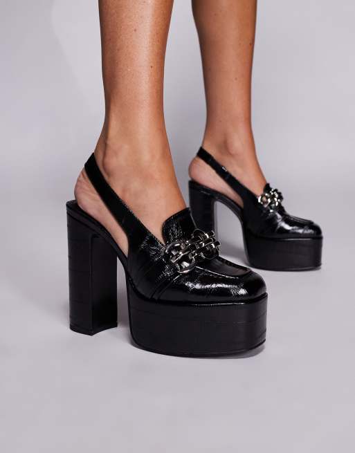 ASOS DESIGN - Polly - Sorte loafers med plateauhæl