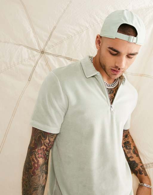 ASOS DESIGN - Polo-T-shirt i kakifarvet velour