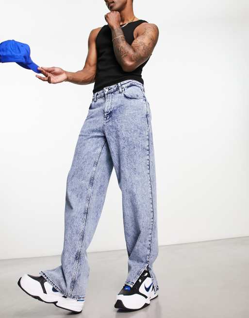 ASOS DESIGN - Posede jeans med slidser i benene i 80'er-vask
