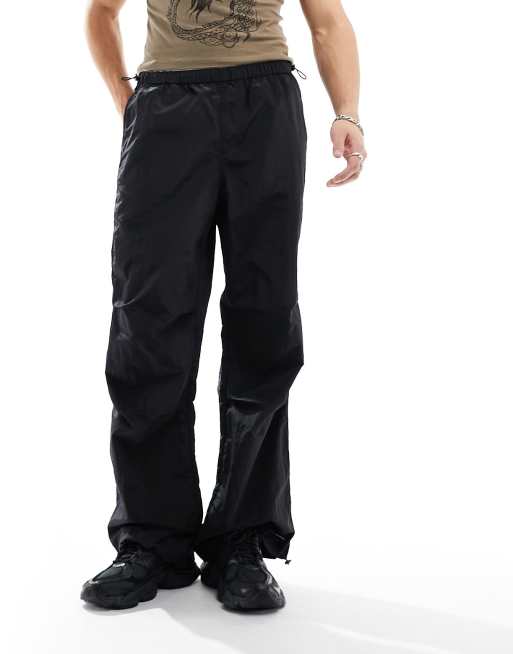ASOS DESIGN - Posede nylonbukser med brede kanter i sort