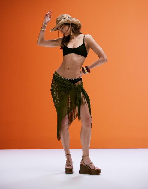 ASOS DESIGN - Premium - Håndhæklet strand-sarong med frynser