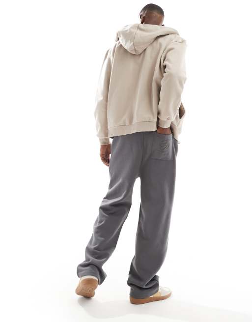 ASOS DESIGN - Premium - Koksgrå joggingbukser med vide ben og forhøjet print
