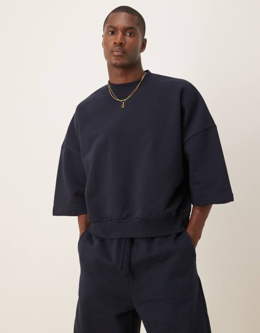 ASOS DESIGN - Premium - Marineblå ekstremt oversized sweatshirt med korte ærmer i kraftigt stof på 400 gsm - Del af sæt