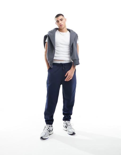 ASOS DESIGN - Premium - Marineblå kradtige tapered joggingbukser