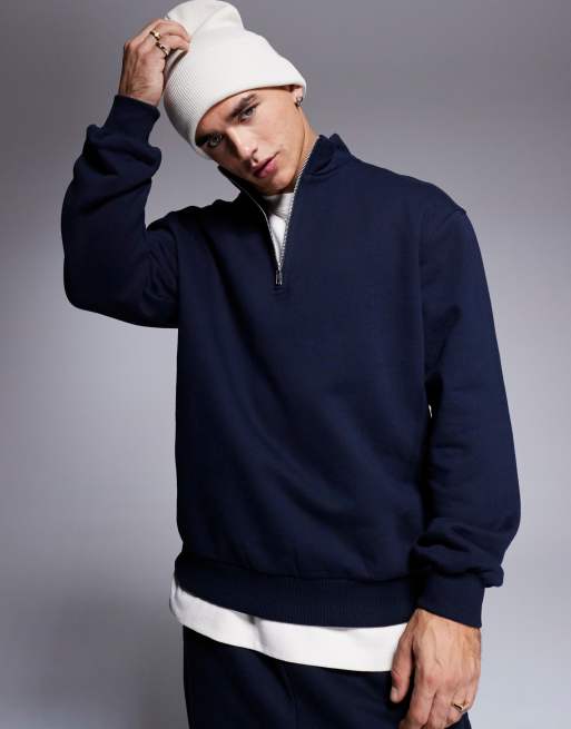 ASOS DESIGN - Premium - Marineblå oversized sweatshirt med kvart lynlås i kraftigt stof på 400 gsm