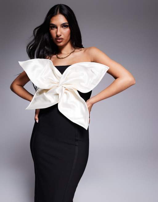 ASOS DESIGN - Premium - Sort bandage-midikjole med cremehvid satinsløjfe