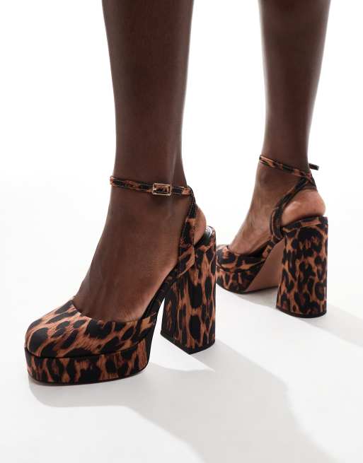 ASOS DESIGN - Pressure - Højhælede sko med plateausål og leopardprint