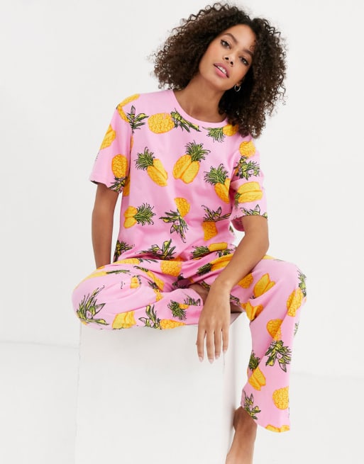 ASOS DESIGN — Pyjamassæt i mix & match jersey med ananasprint