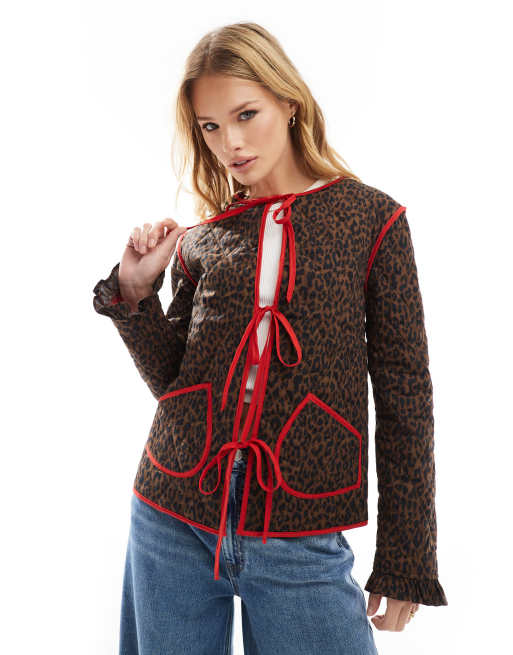 ASOS DESIGN - Quiltet jakke med leopardprint og kontrastfarvede tittekanter