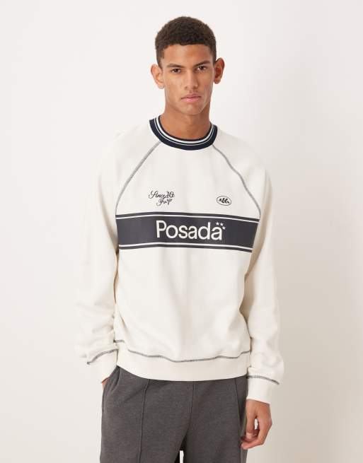 ASOS DESIGN - Råhvid afslappet sweatshirt med kontrasterende sømdetaljer og tekstprint