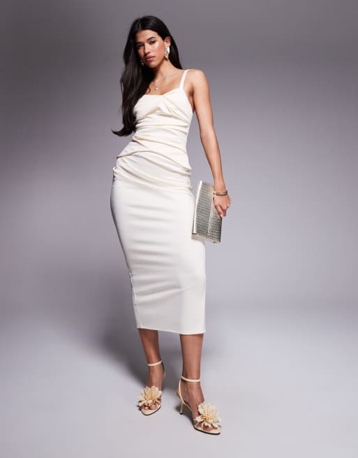 ASOS DESIGN - Råhvid midikjole med plisseret overdel og struktur