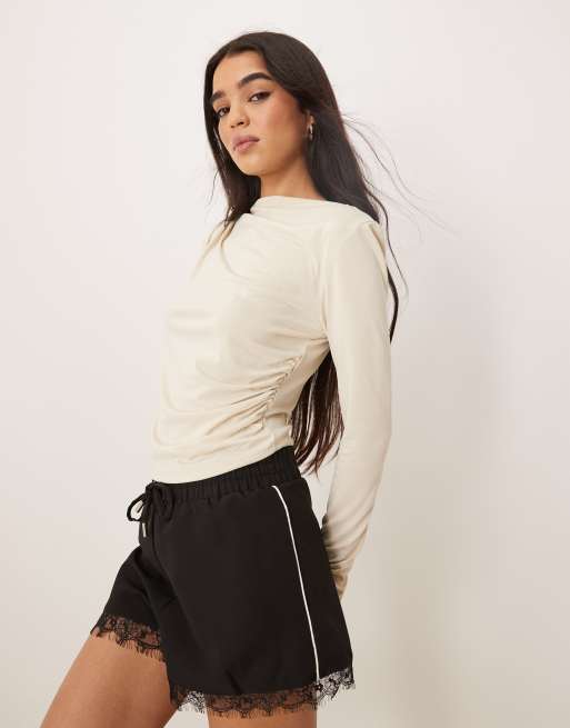 ASOS DESIGN - Råhvid overdel med plisseret talje og bred hals i modal