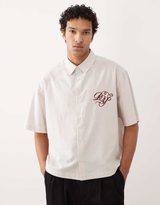 ASOS DESIGN - Råhvid oversized firkantet skjorte med striber og broderi på brystet