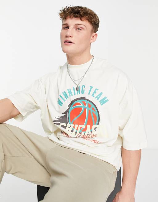 ASOS DESIGN - Råhvid oversized T-shirt med college-print