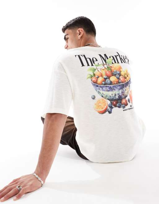 ASOS DESIGN - Råhvid oversized T-shirt med grafisk frugtprint på ryggen i kraftigt tekstureret stof