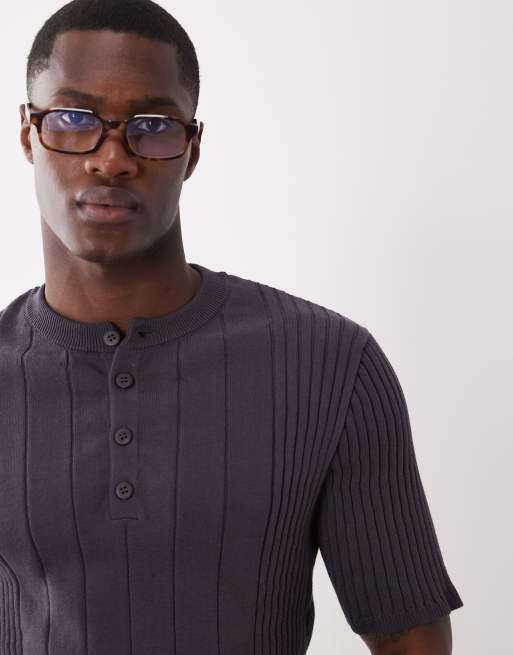 ASOS DESIGN - Råhvid ribstrikket henley-T-shirt