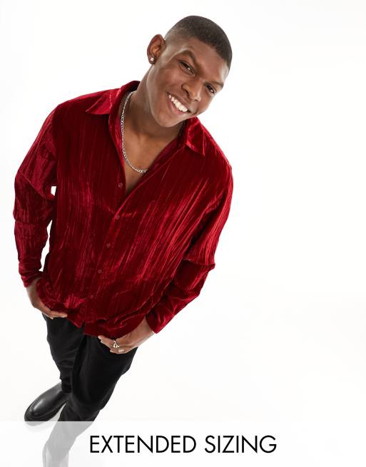 ASOS DESIGN - Rød afslappet skjorte i velour-krølstof