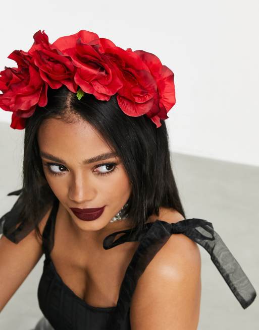 ASOS DESIGN - Rød Halloween-hårbøjle med blomster