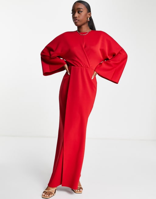 ASOS DESIGN - Rød maxikjole med snoet front og trompetærmer