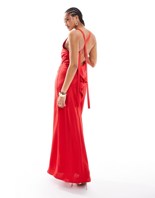 ASOS DESIGN - Rød maxikjole med vandfaldsudskæring bagpå og spændestropper i satin