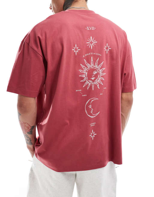 ASOS DESIGN - Rød oversized T-shirt med kosmisk print langs rygraden