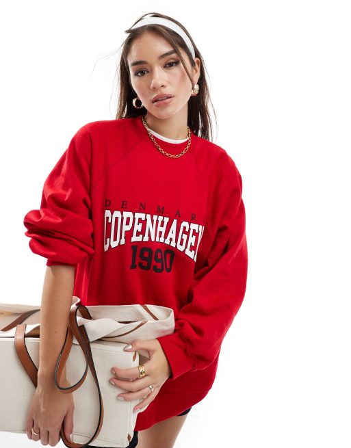 ASOS DESIGN - Rød raglan-sweatshirt med 'Copenhagen'-grafik