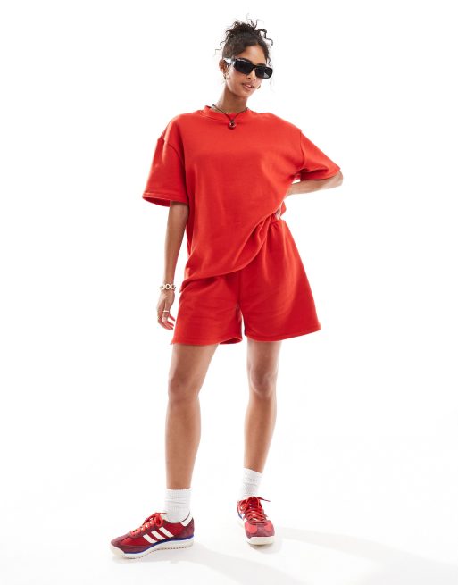 ASOS DESIGN - Rød shorts i sweatshirt-stof - Del af sæt