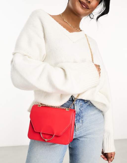 ASOS DESIGN - Rød skuldertaske med ring- og kugledesign og udskiftelig kæderem