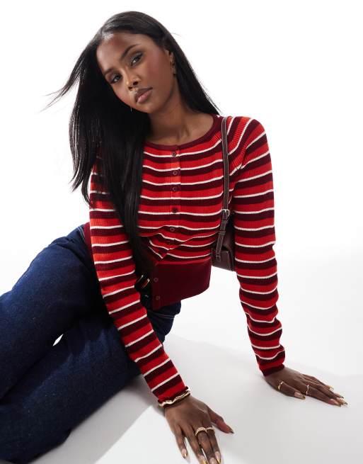 ASOS DESIGN - Rød-strikket cardigan med rund hals og striber