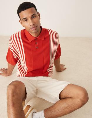 ASOS DESIGN - Rød strikket polo med kontraststriber og oversized firkantet pasform