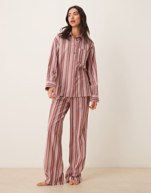 ASOS DESIGN - Røde og hvide pyjamasbukser med striber i let vævet stof