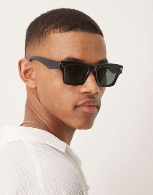 ASOS DESIGN - Rektangulære solbriller med røgfarvet grønne glas og mat gråt krystalstel