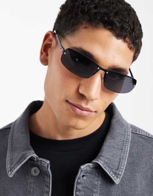 ASOS DESIGN - Rektangulære solbriller med sort stel og røgfarvede glas