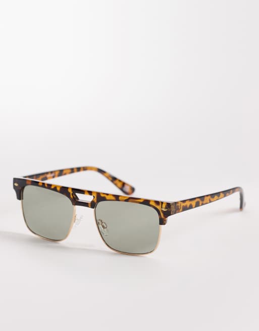 ASOS DESIGN - Retro solbriller med skildpaddemønstret stel og blå glas