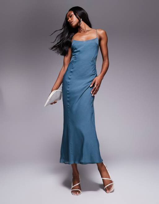 ASOS DESIGN - Røgblå midaxi-kjole i chiffon med tværsnit og meshpaneler