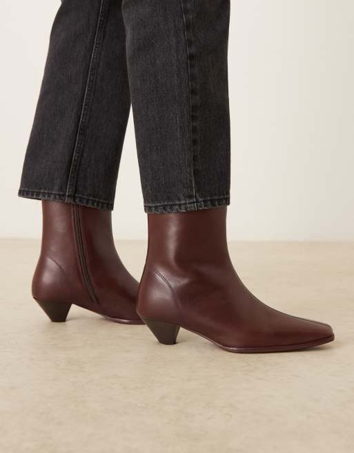 ASOS DESIGN - Rhodes - Bordeauxrøde ankelstøvler i læder med hæl og smal tå