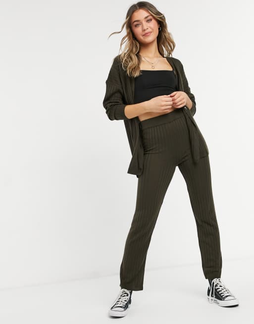 ASOS DESIGN - Ribstrikkede bukser med lige ben i brun - Del af sæt