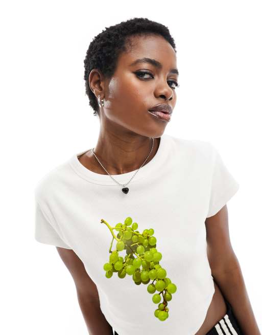 ASOS DESIGN - Ribstrikket baby-T-shirt med vindruegrafik i hvid