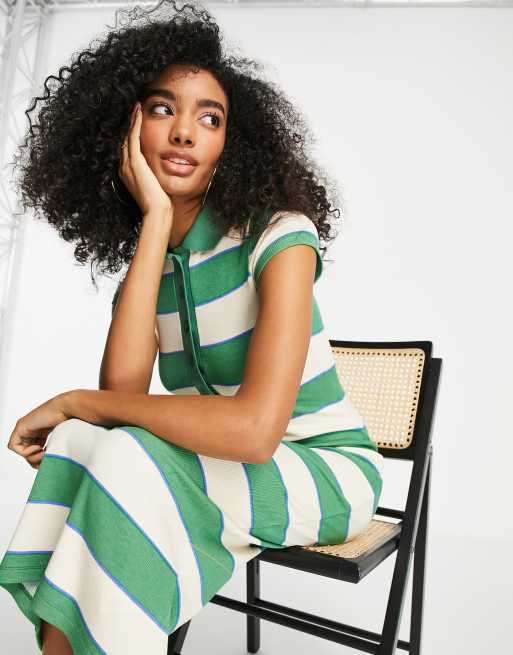 ASOS DESIGN - Ribstrikket midi-polokjole med krave og grønne striber