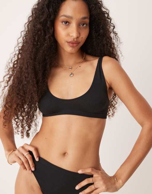 ASOS DESIGN - Ribstrikket sort croptop med dyb rund hals